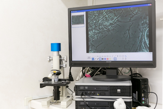 お口の中の虫歯菌や歯周病菌の種類・量を調べるために、位相差顕微鏡を導入しています。