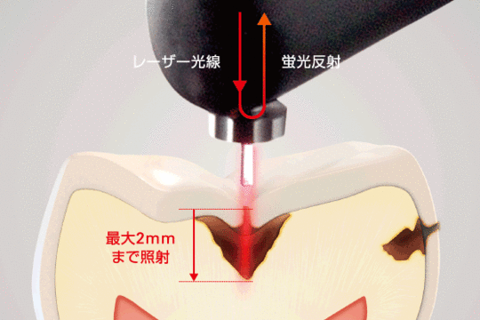 わかりやすくいうと虫歯発見器です。歯にレーザーを当てて、肉眼では見えにくい場所にある虫歯や、小さな虫歯まで発見できます。