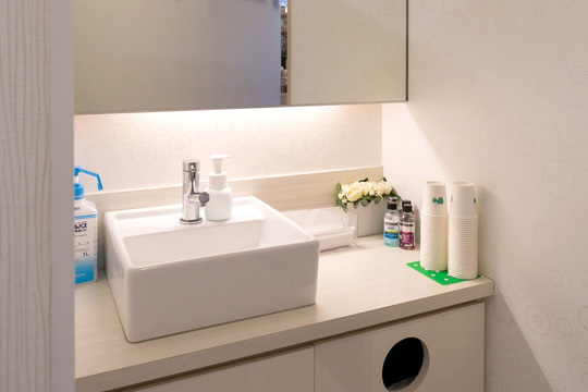 治療前後にお口のケアができるスペースをご用意しています。仕事帰りなど、外出先からでもお気軽にご来院ください。